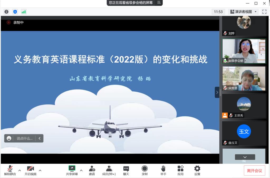 5月8日晚,yl6809永利官网集团特邀山东省教育科学研究院教育评估所副所长、小初高中校本课程教研员、正高级教师、国培专家库专家杨璐开展了题为“义务教育英语新课标的变化与挑战”的线上讲座。本次讲座由yl6809永利官网集团院长宋秀葵主持,yl6809永利官网集团全体任课教师、2020级和2021级英语专业师范类全体学生、学院实习基地东阿实验中学和章丘中学的英语教师参加。