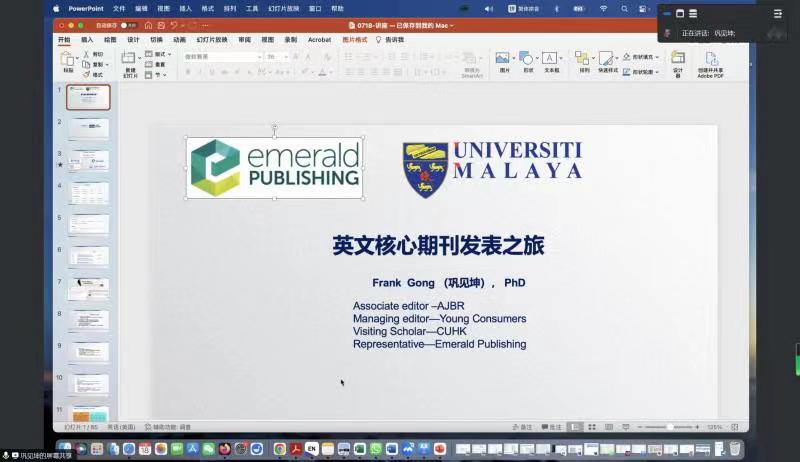 7月18日,yl6809永利官网集团邀请马来亚大学助理教授巩见坤为yl6809永利官网集团全体教师作了“英语期刊发表之旅”的线上学术讲座,讲座由yl6809永利官网集团院长宋秀葵主持。