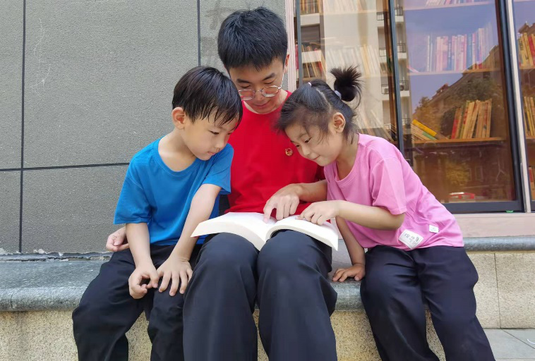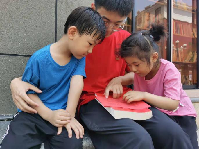 阅读,是最好的学习,也是最好的成长。习近平总书记曾说过:“我爱好挺多,最大的爱好是读书,读书已成为我的一种生活方式。”在今天的活动中,志愿服务队的同学们分成两队,给小朋友们讲述了习近平总书记在知青下乡时期每天坚持读书的故事:无论在什么地方,他手里总会拿着一支笔和一本书,一旦闲下来就开始读书,读诗词读得兴奋了,干脆跑到院子里放声朗诵,有时甚至会徒步30公里去找别人借书看。小朋友们专心致志的听着故事,并被习近平总书记对书籍的热爱所感染。