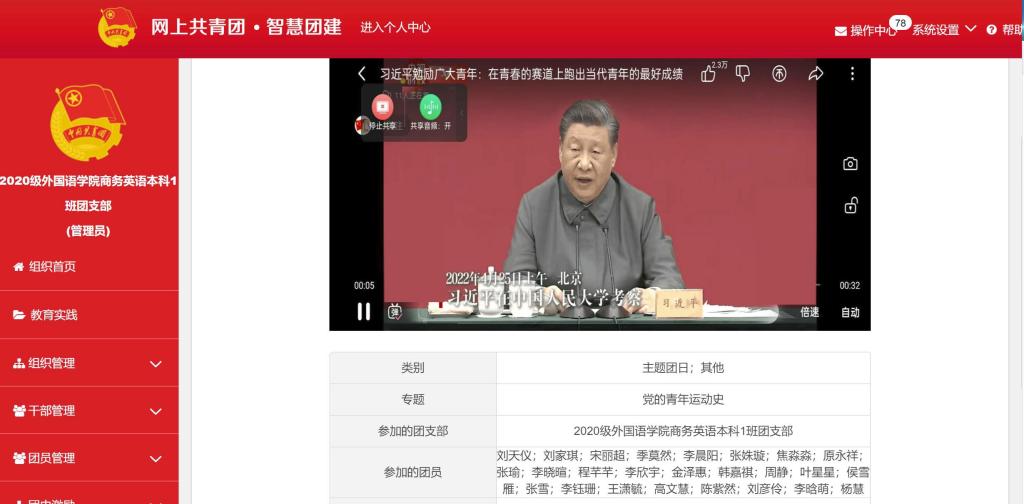在4月28日举行的主题团日活动中,全体团员们深入学习习近平总书记4月25日在中国人民大学的讲话精神,深切感受到习近平总书记对青年的殷切关心与期盼,同学们表示将牢记习近平总书记嘱托,将奋斗的青春融入民族复兴的伟大征程中。