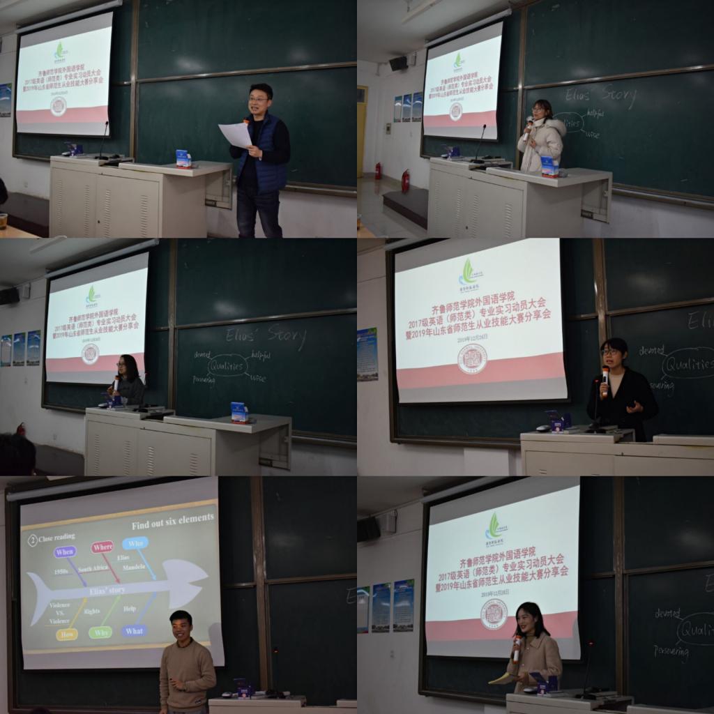本次会议使2017级英语(师范类)专业全体学生对于教育实习有了更深刻的了解,对于教育实习的重要性有了更深刻的认识,对接下来的教育实习安排有了更清晰的认识与规划,并为致力于参加2020年山东省师范生从业技能大赛的同学们提供了丰富的经验,为我院明年在该项赛事中再创佳绩打下了良好的基础。