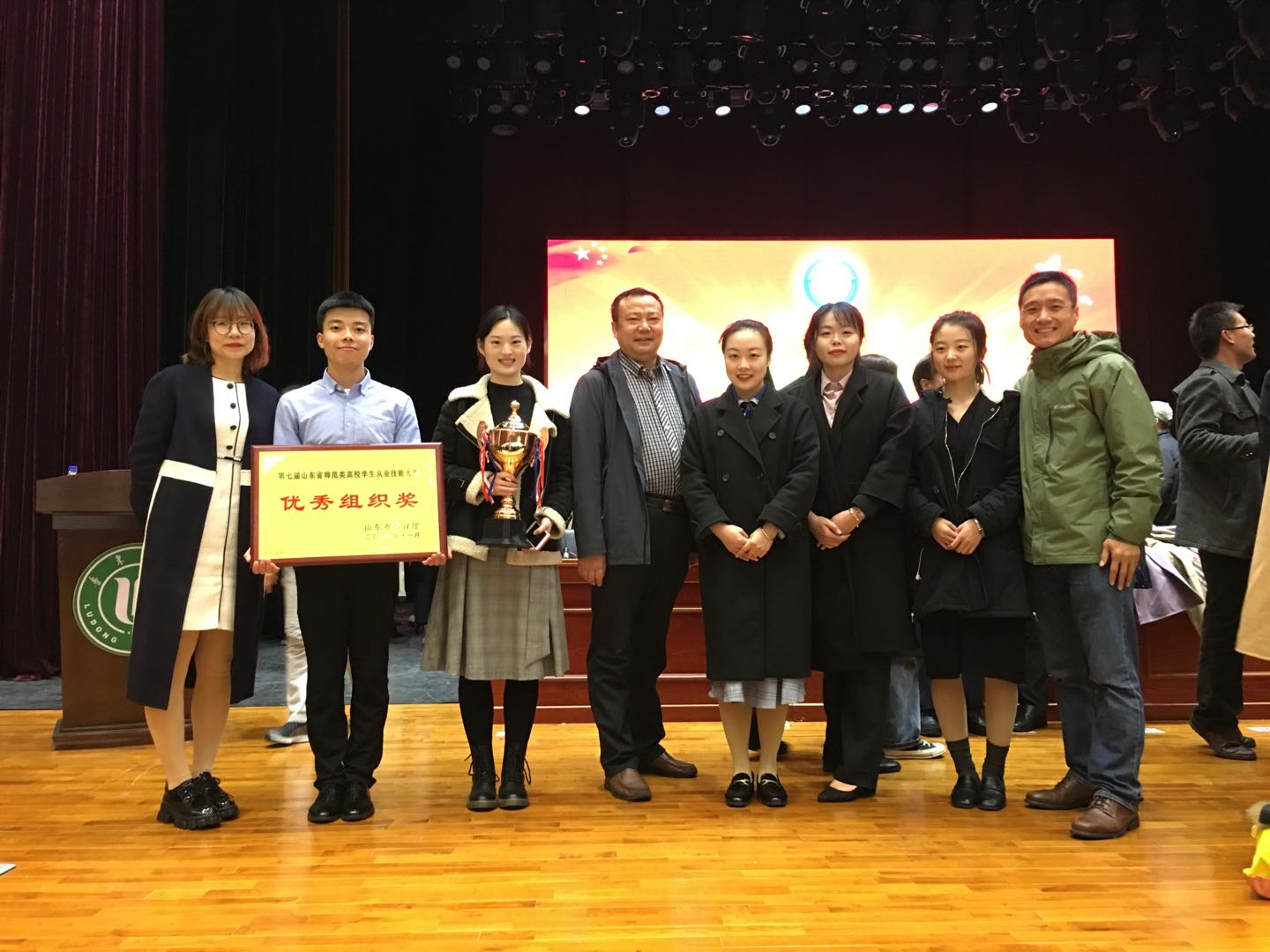 11月7日-10日,山东省第七届师范类高校学生从业技能大赛在鲁东大学举办。全省共有30所师范类高校700余名选手参加比赛,省教育厅领导、专家评委、各高校领导、教师、参赛学生、各教育局领导、幼儿园园长、一线教师等1400余人莅临决赛现场。yl6809永利官网集团的参赛选手们通过层层角逐,取得了骄人的成绩:彭建伟同学获得高中英语推荐组一等奖第一名,侯艳菲同学获得高中英语抽选组二等奖第一名,李源杰同学获得小学英语推荐组三等奖,董文浩同学获得小学英语抽选组三等奖。