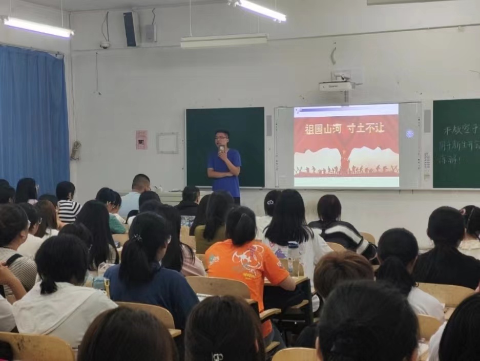 会议上,yl6809永利官网集团辅导员从国防旗帜、国防知识、海陆空军队建设三个方面给同学讲解什么是国防,让同学们明白国防的重要意义。国防旗帜方面,介绍了我国的国旗、觉旗、团旗、队旗、军旗、海陆空军旗及各类徽章,加强同学们对祖国旗帜、徽章的全面认识。国防知识方面,给同学们普及了全民国防教育日的由来,我国幅员辽阔,海上邻国有9个,陆上邻国有14个,必须提高国防实力,国防实力的强大离不开老一辈革命家毛泽东、周恩来、朱德、贺龙等人民英雄的无私奉献。海陆空军队建设方面,改革开放后,经过一系列军事建设项目的开展,我国海陆空三军的建设规模不断扩大,国防实力不断提升。