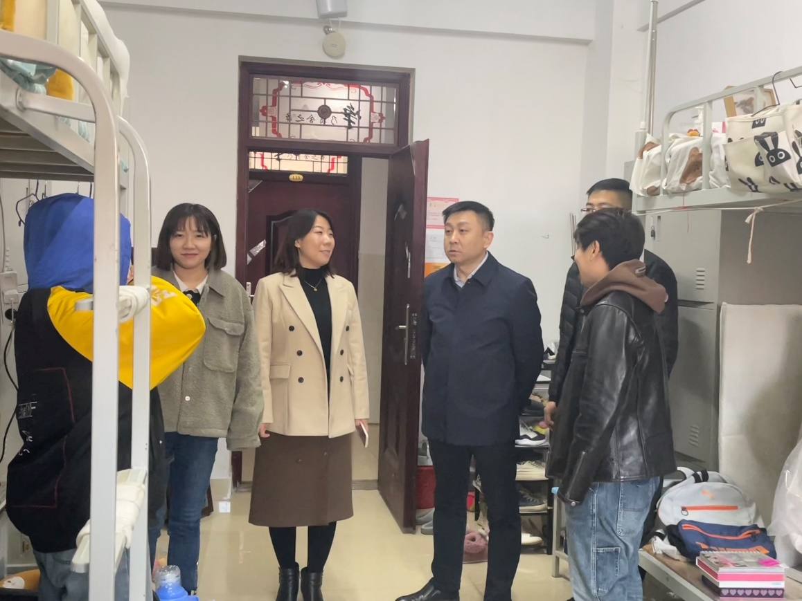 为进一步落实新学期学生返校管理工作,深入了解学生返校的学习生活状况,2023年2月21日下午,yl6809永利官网集团党委书记于江、党委副书记迟英娟、团总支书记牛荦、辅导员刘欣欣、邵河到学生宿舍走访慰问。