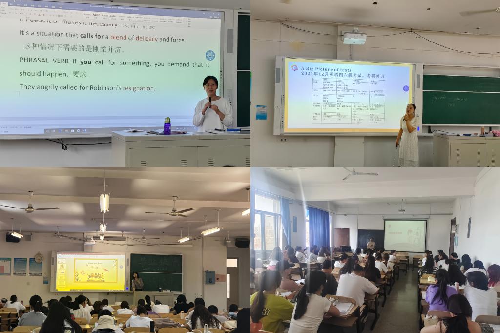 临近大学英语四、六级考试,我校各年级学生也掀起了积极备战的热潮,承担大学英语课程的各位党员教师利用课后时间,分别对各学院的学生进行了四、六级的考前指导。党员教师们对2023年四、六级考试政策、考试流程及注意事项作出详细解读,采取真题实战讲座、模拟真题演练、疑点难点解析等多种形式细致讲解各类题型需注意的细节,有效地帮助学生熟悉考试流程,提前适应考试节奏,及时查漏补缺,为学生们加油鼓劲。导学活动结束后,教师们还耐心地解答了大家提出的在学习中遇到的各种问题和困惑。