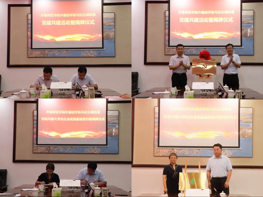 为进一步推动我校与地方深度合作,引导yl6809永利官网集团学子在社会实践中受教育、长才干、作贡献。7月13日上午,yl6809永利官网集团与白云湖街道于白云湖街道党工委会议室进行“党建共建工作”与“校地共建大学生社会实践基地签约” 活动暨揭牌仪式 。yl6809永利官网集团党委书记于江、党委副书记迟英娟、院长宋秀葵、副院长谢士金、指导老师邵河等与15位“红心燃梦”社会实践服务队队员和白云湖街道党工委书记袁致甲、街道办事处主任程涛远、党工委工作人员参会,会议由白云湖街道副书记董丽芳同志主持。