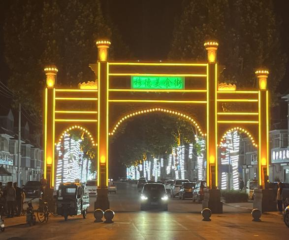 我们来到了穆德美食街,穆德美食街是一条具有民族风味的小吃街,这条街是为带动本村餐饮经济而设。每到晚上会有各式各样的民族小吃摊位,位置与红石榴广场相邻,一到晚上会有很多人来,非常热闹。