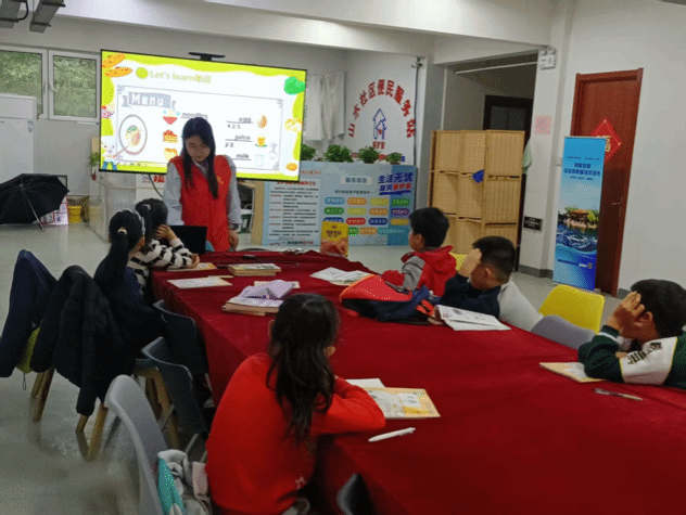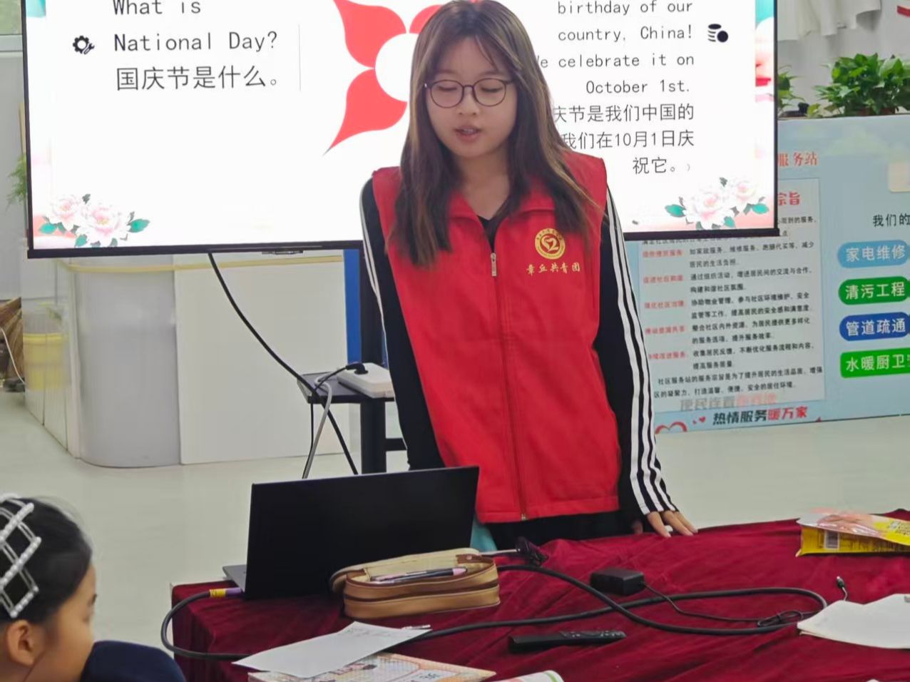 周日上午,我们志愿服务队的四位同学,带着精心准备的教案和满满的热情,走进了山水泉社区的支教课堂,为这里的孩子们带来了一场融合文具英语知识与国庆节文化的趣味教学。