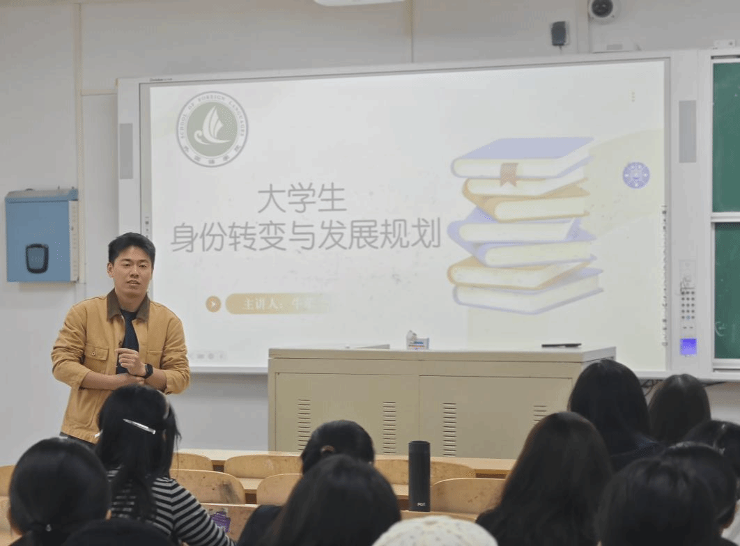 活动伊始,牛荦以一则寓意深远的“狮子与羚羊”故事为引子,向新生们提出了一个引人深思的问题:“在人生的赛道上,你们更倾向于成为勇猛的狮子,还是敏捷的羚羊?”这一问题迅速激发了同学们的深刻反思,为整场活动奠定了思考与探索的基调。