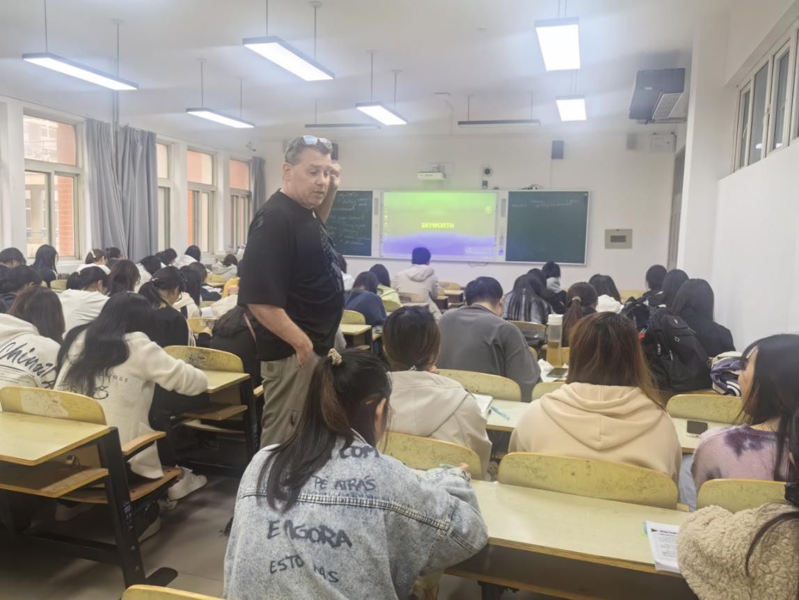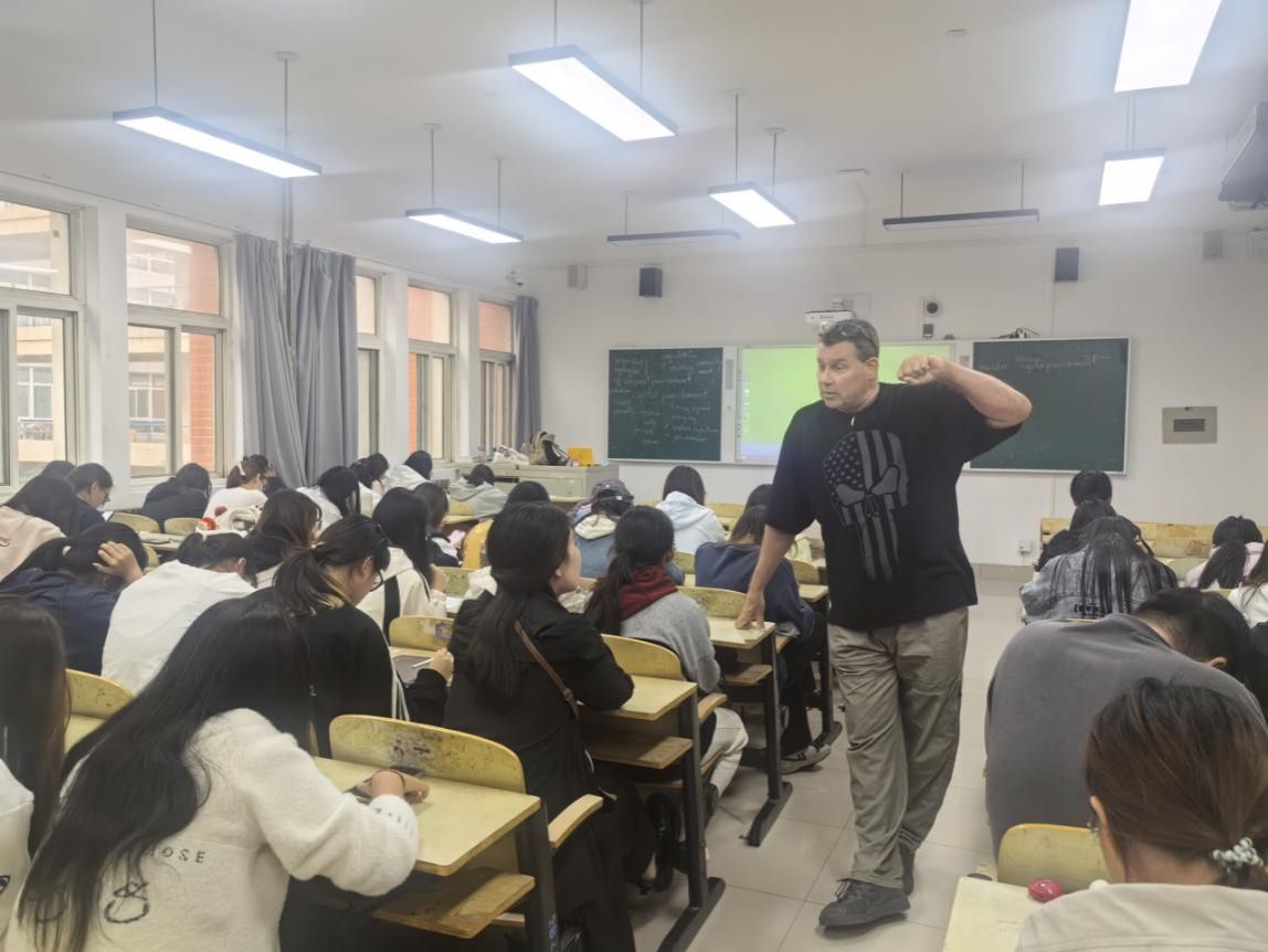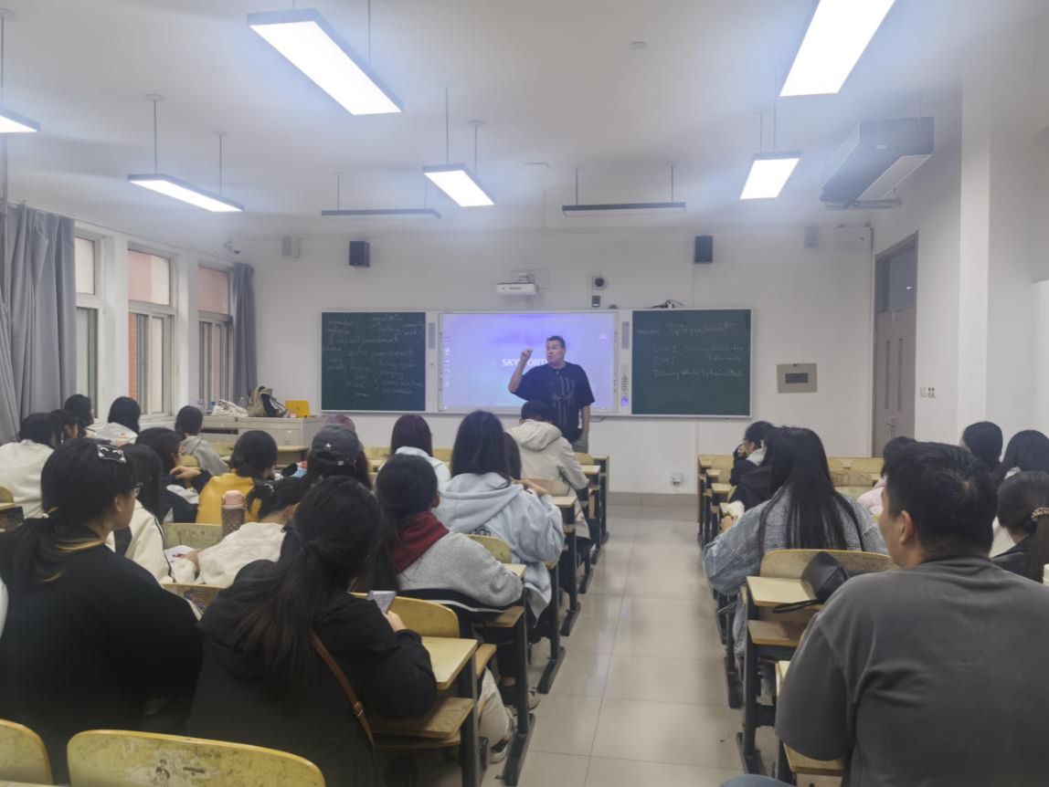 活动伊始,David Dee老师以经典文学与真实案例为双主线,用全英文引导学生沉浸式探索主题。他先通过分段解析《罪与罚》经典片段,带学生积累法律相关英文词汇与复杂句式;再引入中西方典型司法案例,组织小组用英语辩论“惩罚的意义”“道德与法律的边界”等话题,既锻炼了学生的口语表达与逻辑组织能力,又让英语学习跳出“单词语法”的局限。学生们积极用英语分享观点,在交流中不仅提升了语言熟练度,更培养了跨文化视角下的思辨能力。