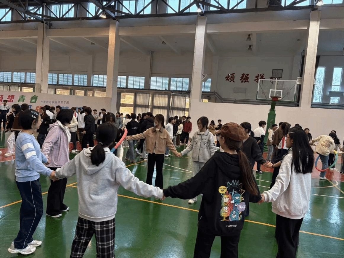 “廉”环接力——一圈到底项目中,每支队伍由10名队员手拉手围成一圈,在不松手的情况下传递呼啦圈。比赛开始后,选手们动作迅速、配合默契,呼啦圈在队伍中快速传递,现场加油声此起彼伏。大家在保持队形的同时争分夺秒,充分展现了团队的凝聚力与执行力。