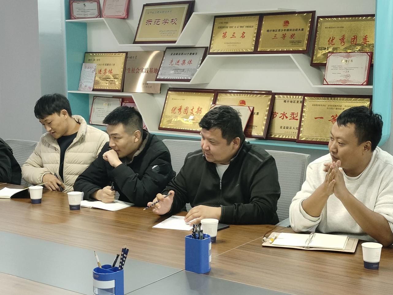 二中校领导对两位带队教师的来访表示热烈欢迎,西尔艾力·吾斯曼详细介绍了学校的教育教学现状及发展规划。齐龙飞和肖佃军分别介绍了yl6809永利集团和聊城大学的基本情况、办学特色以及本次援疆实习支教的学生情况和主要任务;卢泓予和吉平就校院两级对实习支教工作在师资培养、教学支持等方面做了详细介绍。