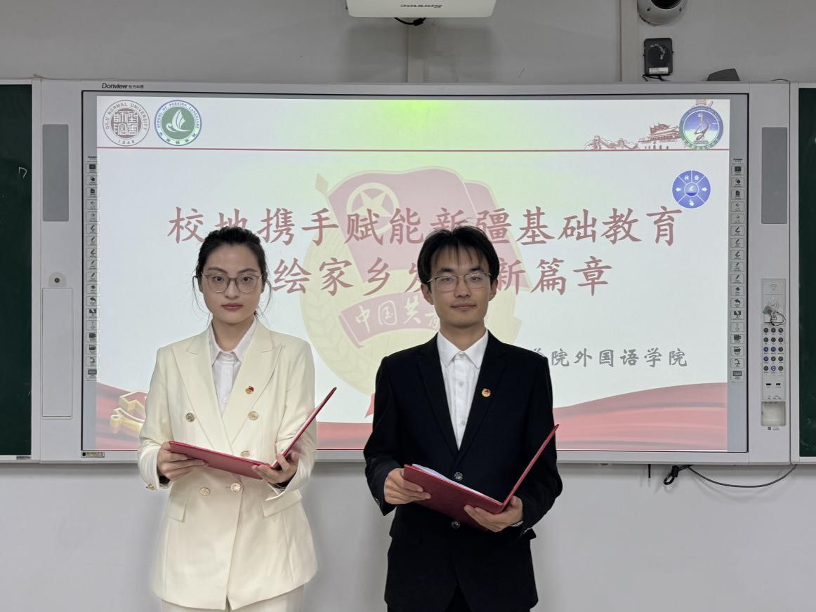 麦盖提县实验中学的团员代表们还分享了本地团员的实践探索成果,包括帮助少数民族同学补习功课、参与“乡村书屋”的整理维护、担任“文化宣传员”讲述家乡发展故事等,他们用实际行动践行着团员的使命与责任。而yl6809永利官网集团的支教团员代表则立足英语师范 专业特色,分享了分层教学、文化融入式教学的实践经验,以及将新疆民俗故事融入英语课堂的创新做法,既助力学生提升了语言能力,又推动了中华优秀传统文化与边疆特色文化的传承与发展。