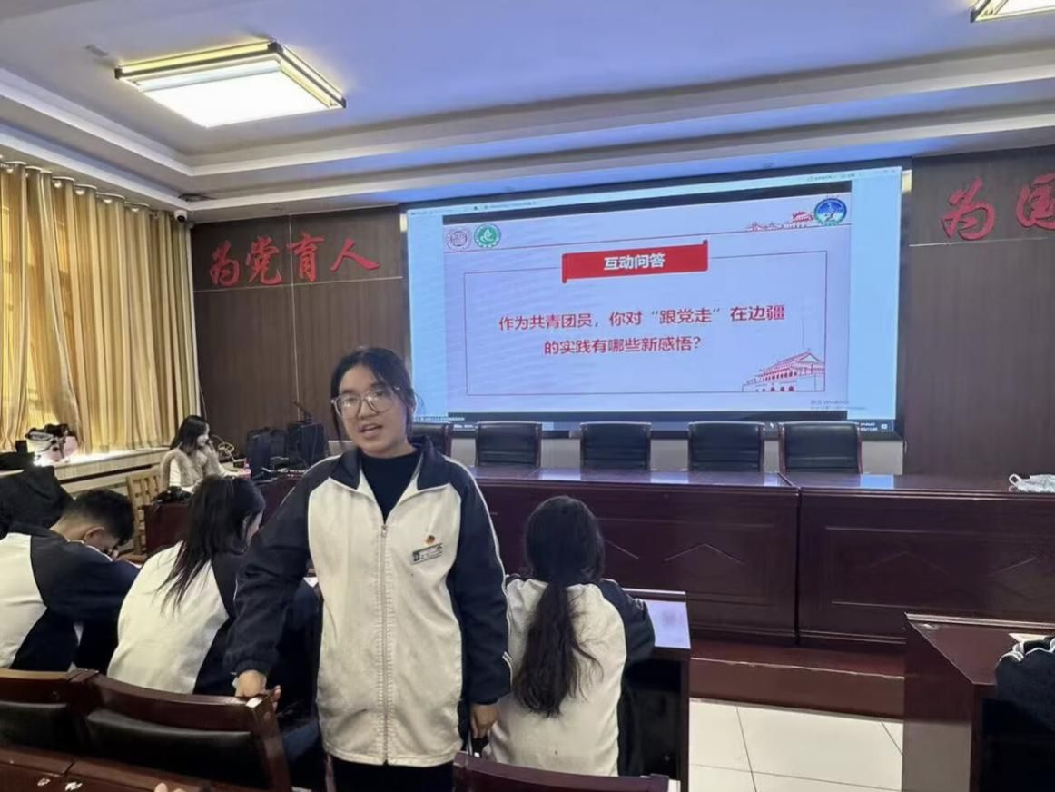 团课伊始,一部精心制作的专题视频缓缓展开,它生动描绘了新疆在党的坚强领导下,各项事业取得的辉煌成就,以及边疆教育工作者默默奉献、支教青年接力前行的感人故事。这些鲜活的事例与奋斗的画面,深深触动了每一位团员的心弦,让他们深刻体会到“党有号召、青年有行动”的深刻内涵,进一步坚定了他们听党话、跟党走的信念与决心。