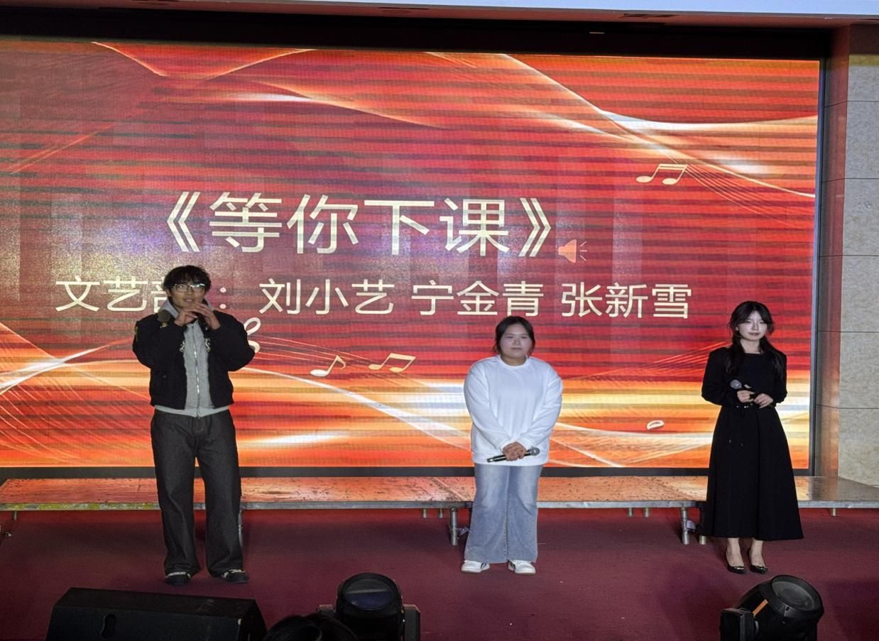 合唱表演结束后,学院文艺部学子带来合唱《等你下课》,熟悉的旋律搭配温柔和声,为激烈的比赛增添了一抹温馨动人的色彩,赢得全场阵阵掌声。