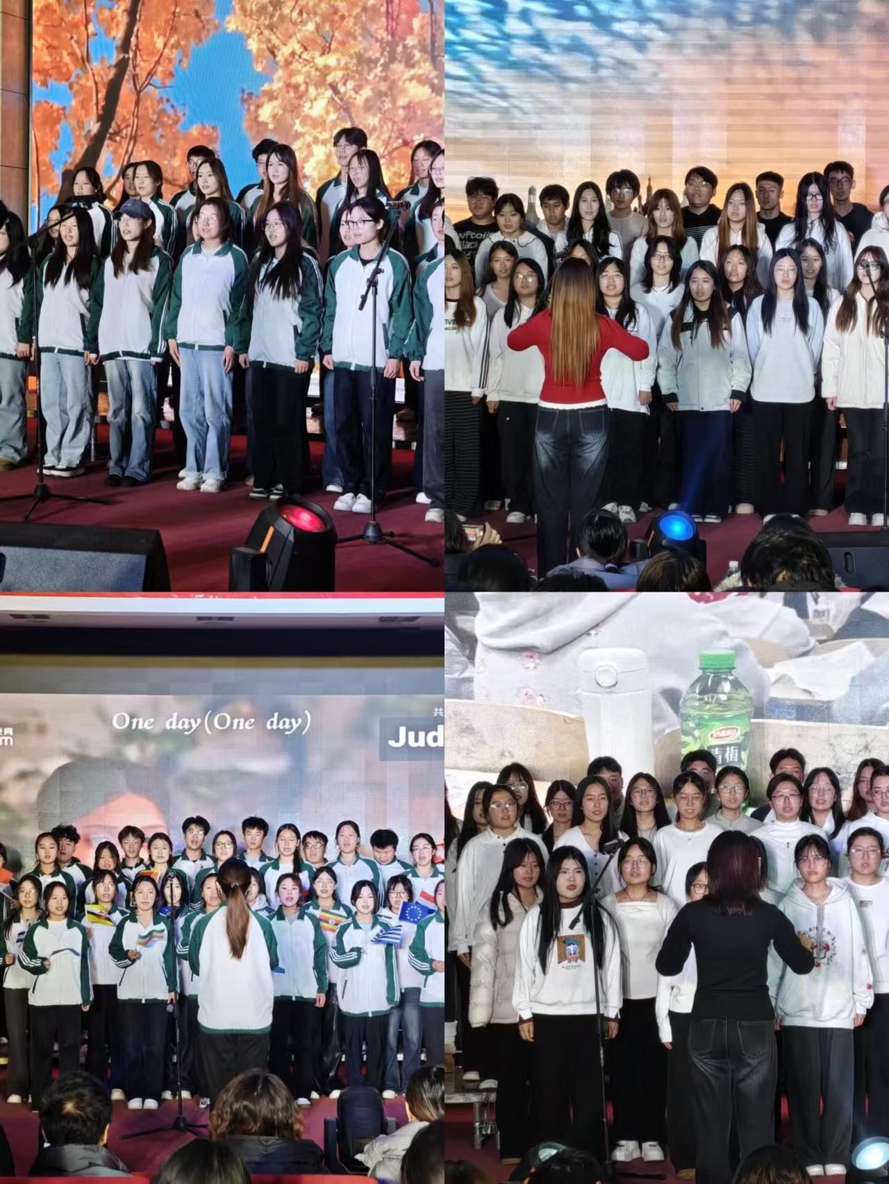比赛现场气氛热烈,各参赛班级精神抖擞、着装整齐,依次登台展现风采。同学们以饱满的热情、嘹亮的歌声和默契的配合,将对班集体的热爱、对青春的憧憬融入每一段旋律。从双语演绎《我的梦 Dream it possible》绽放跨文化交融魅力,到《One day》用治愈声线跨越语言边界;从《夜空中最亮的星》诉说逐梦初心,到《Try everything》彰显无畏探索精神;《紫荆花盛开》传递家国情怀,《一起向未来》奏响奋进强音,最后《相亲相爱》的温暖合唱更是将现场氛围推向高潮,充分展现了外院学子朝气蓬勃、向阳生长的精神风貌。