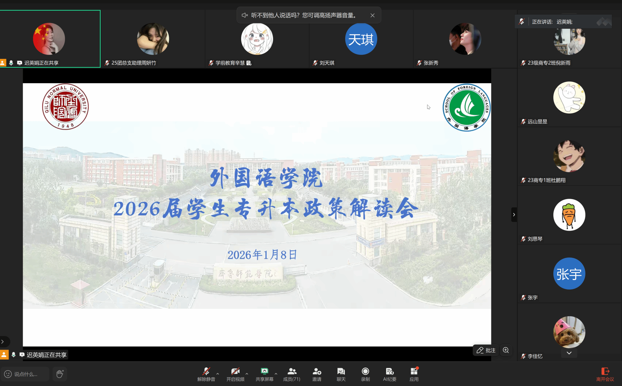 会议伊始,迟英娟强调了专升本对学生学历提升、职业发展的重要意义,指出学院始终高度关注学生升学需求,此次会议旨在通过精准解读政策、分享备考经验,为学生搭建高效沟通平台,助力大家少走弯路、圆梦本科。