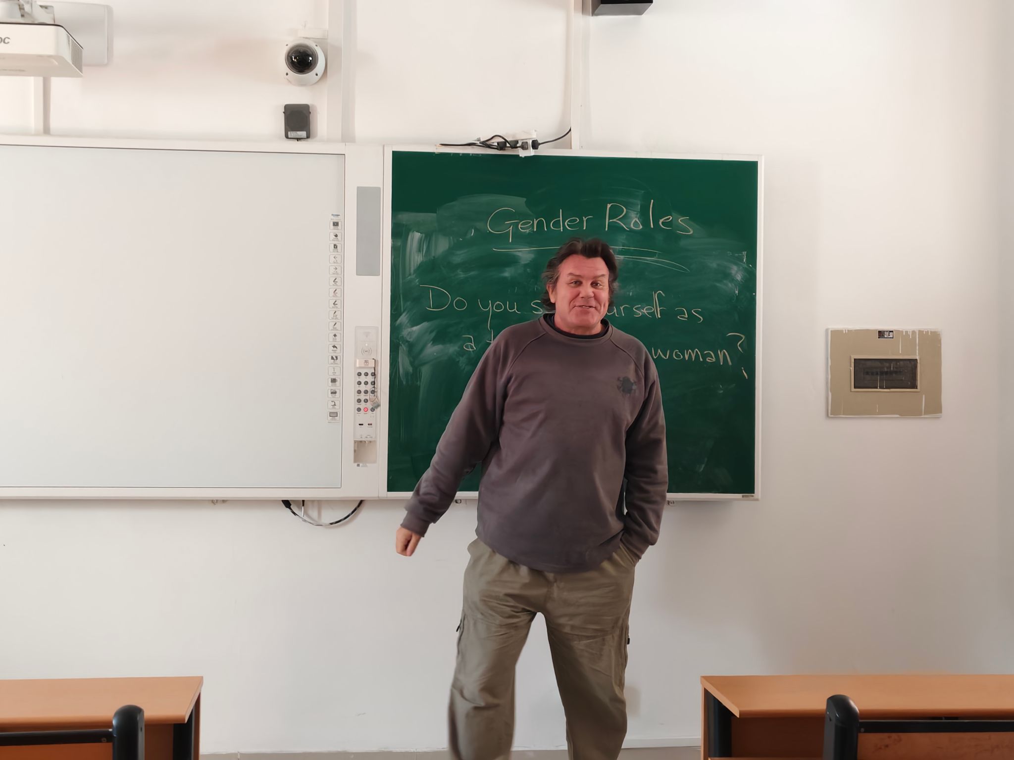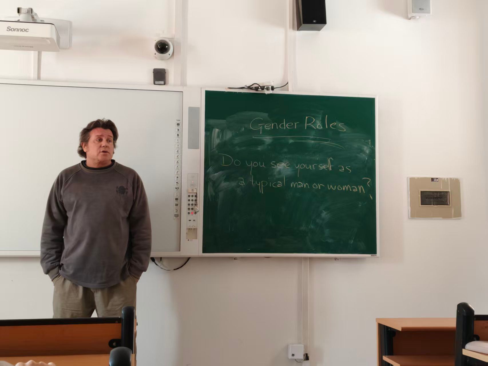 活动现场,老师在黑板上梳理出“gender(性别)”“gender roles(性别角色)”“gender division(性别分工)”等核心词汇,并以“Gender & Gender Roles(性别与性别角色)”为切入点,引导大家讨论“What is the binary view of gender”“How are traditional gender roles shaped by history and culture”等话题,同时追溯不同社会形态下性别分工的发展脉络与文化差异。