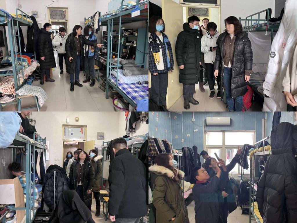 同时,老师们针对最近学生反映的宿舍墙皮脱落、漏水等问题进行了实地考察,并立即协调后勤处维修人员到现场进行维修检查,高效地为同学们解决了急难愁盼的宿舍问题。