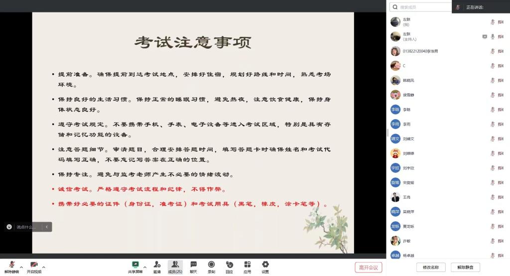 本次线上班会旨在确保学生认真贯彻诚信考试的有关要求,端正考试态度,规范考试行为,同时也为考生加油打气。诚信考试主题班会倡导同学之间要互相督促、互相警策,及时制止作弊行为,引导考生诚信考试、诚信做人,让每一位考生树立诚实考试、抵制作弊的思想观念,以正确的态度迎接专升本考试。诚信班会成功召开的同时也祝愿全体考生可以收获自己满意的好成绩。