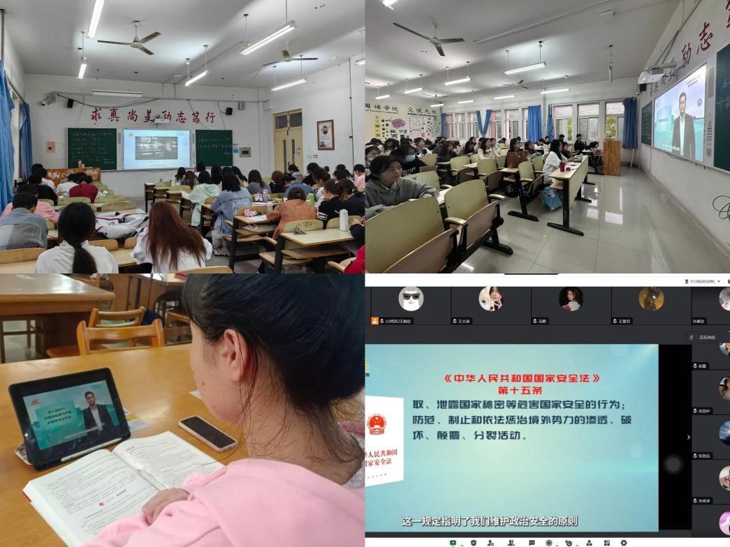 为深入贯彻落实习近平总书记关于加强国家安全教育的重要指示批示精神,进一步传播国家安全知识,提高大学生自觉维护国家安全的意识,在第九个全民国家安全教育日到来之际,4月14日,我校围绕“总体国家安全观·创新引领10周年”活动主题深入开展学校国家安全宣传教育活动,yl6809永利官网集团组织学院全体学生观看《千万高校学生同上一堂国家安全教育课》。