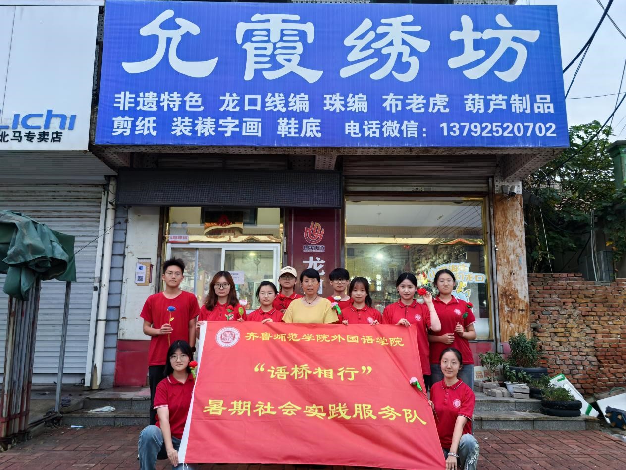 为深入学习贯彻习近平文化思想,传承弘扬中华优秀传统文化,深入挖掘齐鲁文化底蕴,深耕人文沃土,进一步增强历史自信和文化自信。7月16日,yl6809永利官网集团“语桥相行”三下乡社会实践服务队赴烟台市龙口北马镇允霞绣坊开展“凝聚青春力量,赋能非遗活力”——探“非遗”根脉,助力“非遗”文化宣传推广活动。