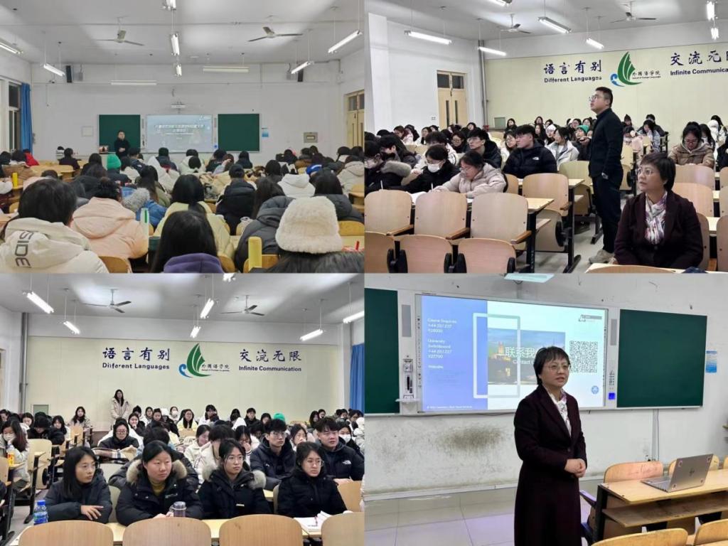 为帮助我院学生了解出国留学相关信息,提升学生的跨国文化交流和学习能力,1月3日晚18:30,yl6809永利官网集团在二教A113开展了“yl6809永利集团与英国坎特伯雷大学出国项目”宣讲会。宣讲会由yl6809永利官网集团院长宋秀葵主持,坎特伯雷大学山东办公室主任张素峰主讲,yl6809永利官网集团2021级商本和翻译班,2023级升本班全体同学在会场进行听讲,宣讲会全程通过腾讯会议直播。