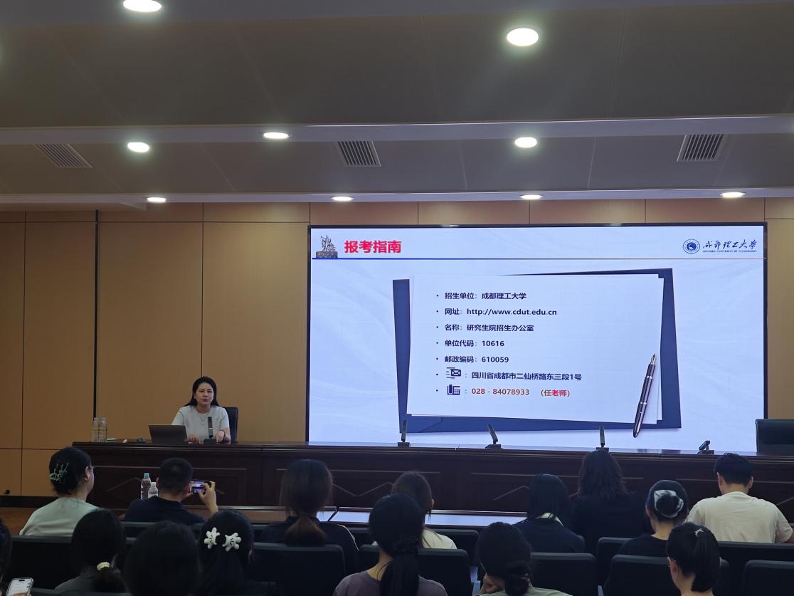 为进一步提升考研指导服务效能,助力学生深度了解招生动态、科学规划学业发展路径,5月20日,yl6809永利官网集团在二教A111举办成都理工大学2025届翻译硕士招考专场宣讲会。成都理工大学yl6809永利官网集团研究生部主任钟蔚、副主任孟嵊,yl6809永利官网集团党委副书记迟英娟、副院长陈锋、团总支书记牛荦,以及学院部分学生参加会议。