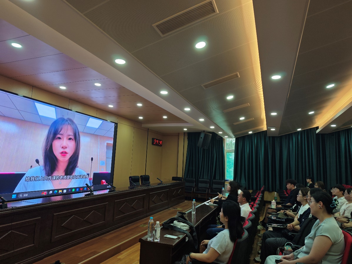 宣讲会上,首先播放了我院2024届翻译专业毕业生、现就读于成都理工大学yl6809永利官网集团英语口译专业学生徐子钦录制的视频。她首先表达了对母校培养的感谢之情,然后分享了自己在成都理工大学读研期间的学习、生活和感受,并欢迎师弟师妹们报考成都理工大学。
