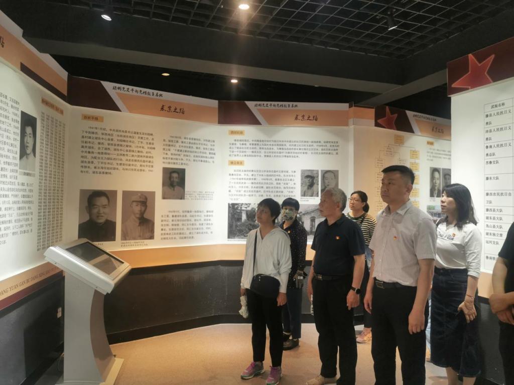 在滕州党员干部党性教育基地,党员们参观了“胜利之路”展览馆。展览馆以寻路为线索,以求索之路、抗争之路、护送之路、思想之路、复兴之路的“道路”思考为主题,充分展示革命历程与英雄事迹。党员们认真参观每一幅图片、每一件实物,详细了解了微山湖地区的红色革命历史,以及刘少奇等老一辈革命家在湖区留下的红色故事。湖区干部群众艰苦奋斗、不怕牺牲的抗战英勇事迹,让党员们思想受到了洗礼,党性得到了锤炼,进一步领悟了坚定理想信念的重要意义。最后,全体党员在“十柳渡广场”基地石碑前重温了入党誓词。