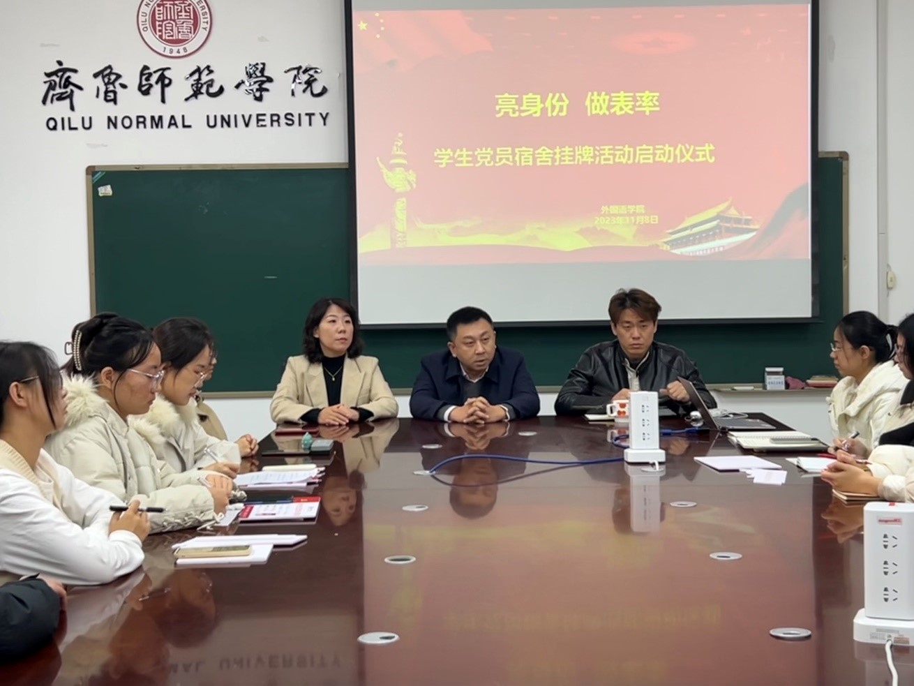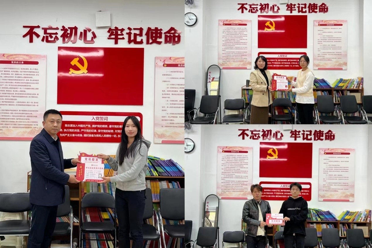 启动仪式结束后,于江、迟英娟、牛荦在现场向学生党员们进行了授牌仪式,学生党员在宿舍进行了挂牌。
