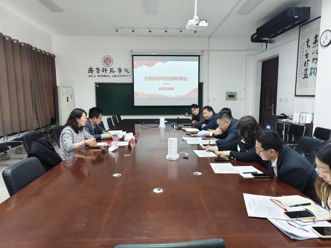 12月2日上午,yl6809永利官网集团在2教B216会议室组织召开党委会、党委理论学习中心组学习(扩大)会议和党政联席会,学校党委委员、纪委书记、监察专员高明辉,学校党委委员、宣传部部长孙磊列席指导会议。学院党委委员及全体行政人员参加会议,会议由党委书记于江主持。