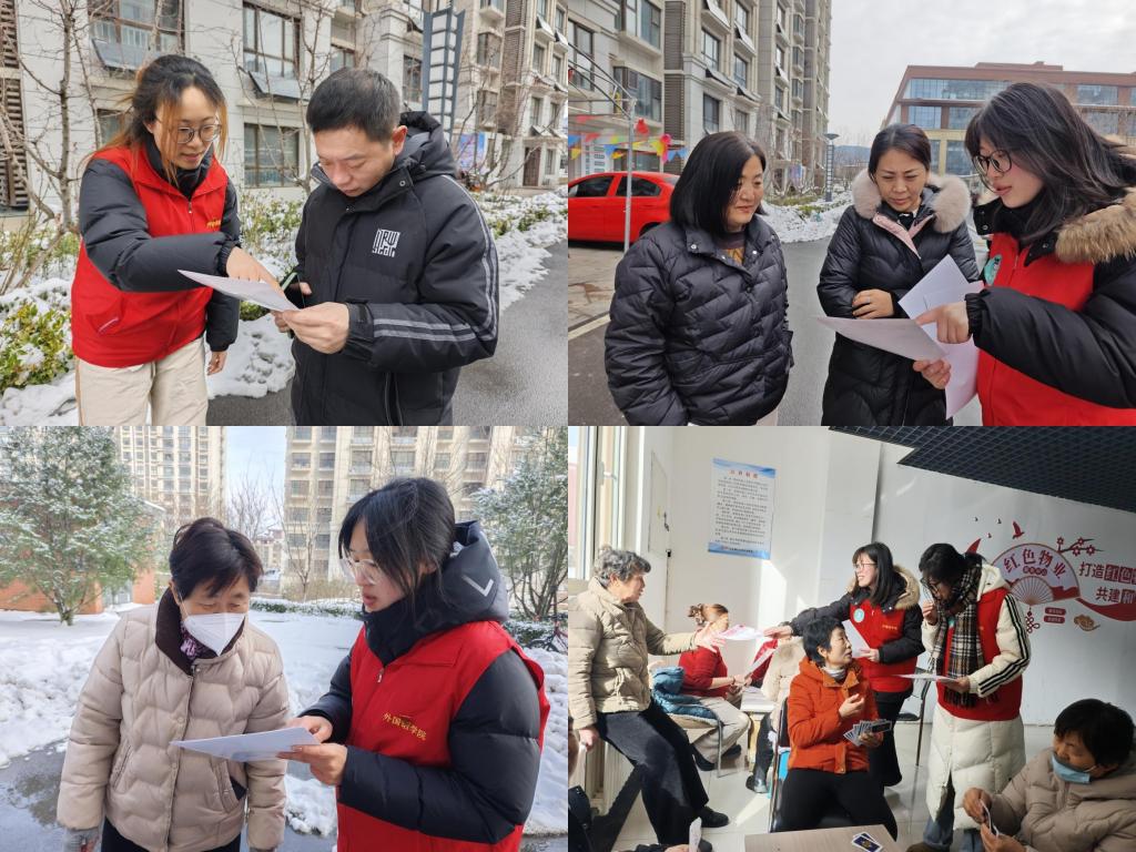 活动当日,12名由学生党员和入党积极分子组成的志愿服务团队分组同步开展了一系列丰富多彩的学雷锋活动。英语推广组别出心裁,设计了"生活场景英语微课堂",针对社区居民日常需求,制作了涵盖交通标识、公共设施用语、超市用语等实用内容的双语宣传资料。志愿者们采用情景模拟、互动问答等教学方式,现场演示了"Push/Pull"标识、"No Parking"警示等实用场景,帮助居民轻松跨越语言障碍。劳动实践组手持清雪工具,对社区主干道、儿童活动区等重点区域进行全面而细致的清扫。他们分工明确,清扫积雪,为居民的安全出行提供了有力保障。