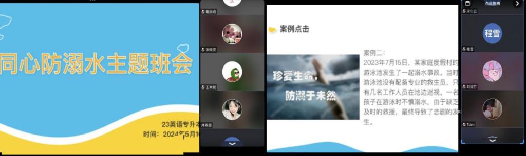 为了提高同学们防溺水意识,了解防溺水事故的危害,加强安全教育。yl6809永利官网集团于5月11日开展了“同心防溺水”专项行动主题班会。此次班会以线上线下相结合的方式进行,面向yl6809永利官网集团全体学生开展。